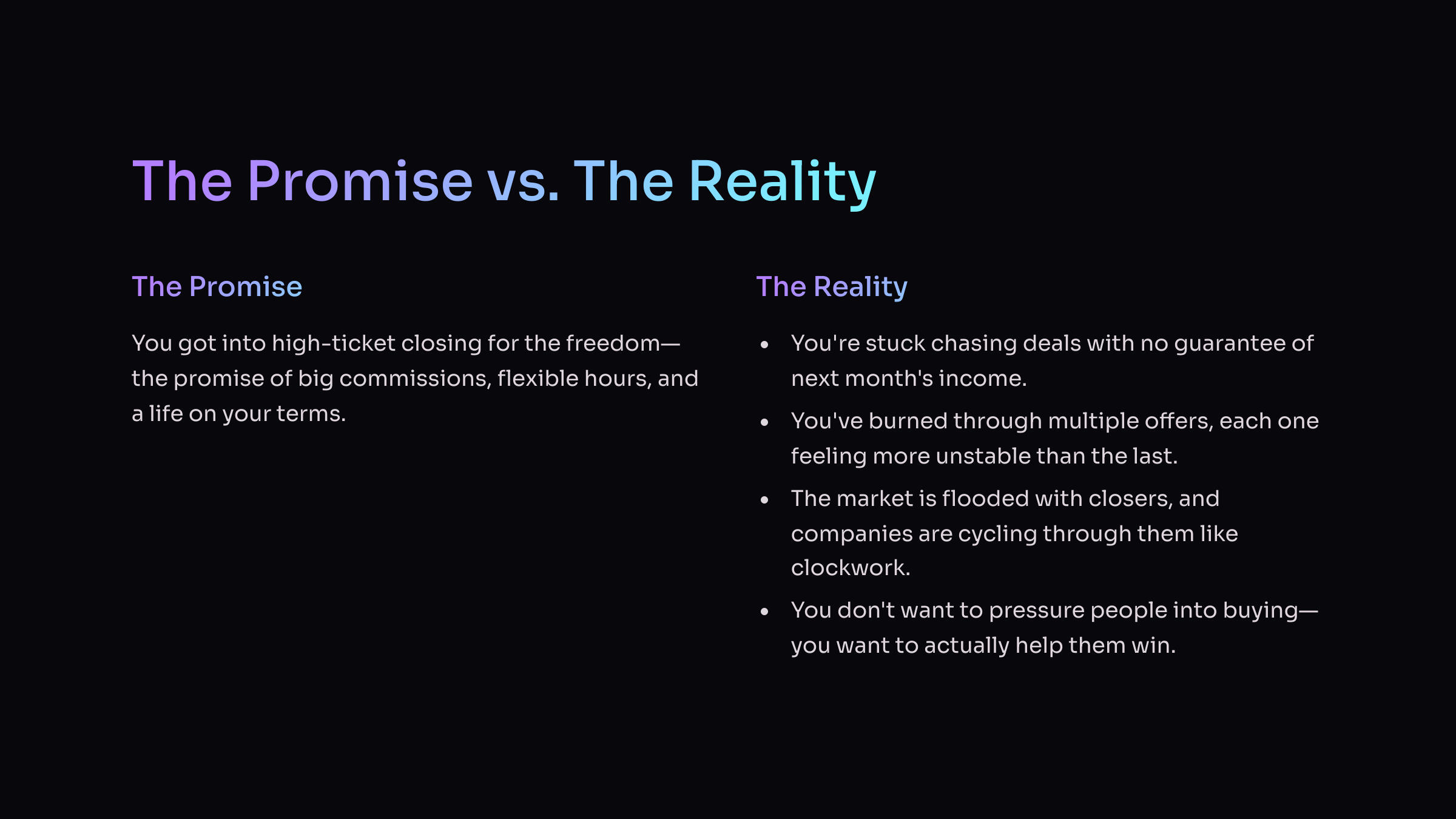 The answer isn’t another sales training or the next “big offer.”It’s breaking the cycle, leveraging your skills, and securing a high-income career with real freedom.