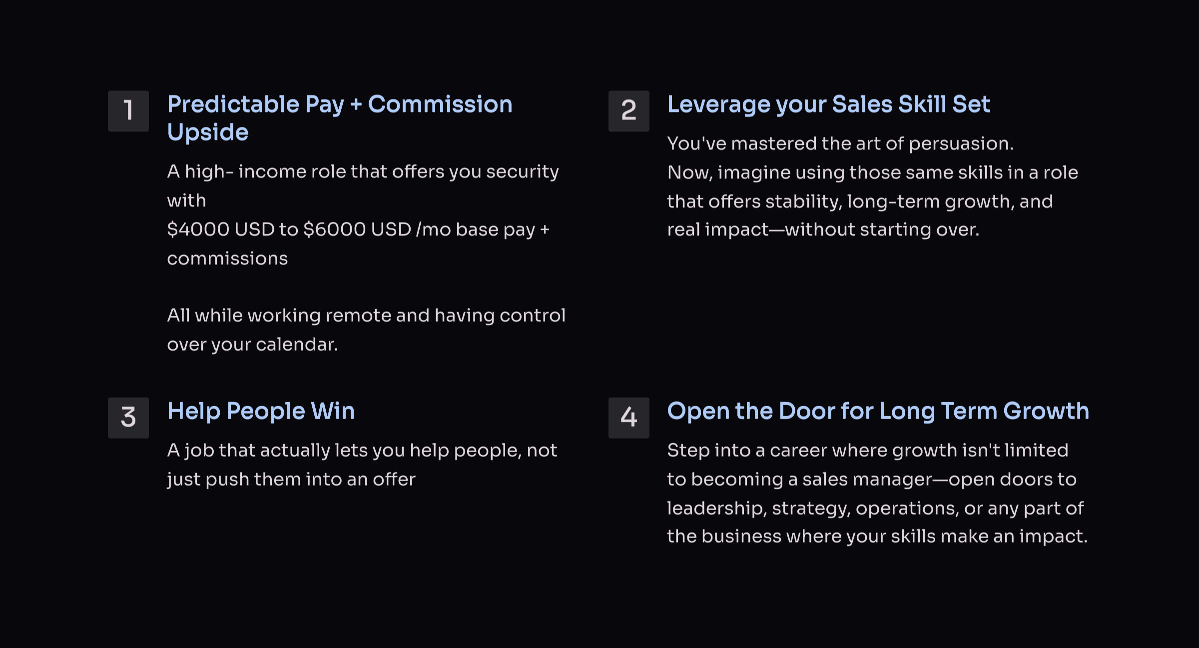 The answer isn’t another sales training or the next “big offer.”It’s breaking the cycle, leveraging your skills, and securing a high-income career with real freedom.