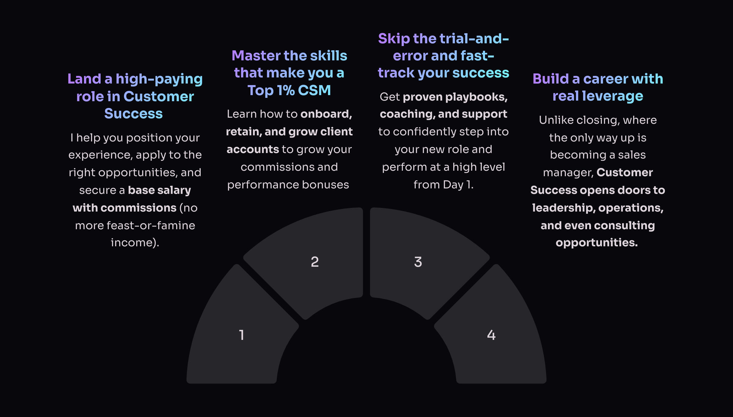 ✅ More financial security, so you’re not living sale to saleTop-tier Customer Success Managers in the coaching space earn as much (or more) than closers, without the stress of always chasing new deals.